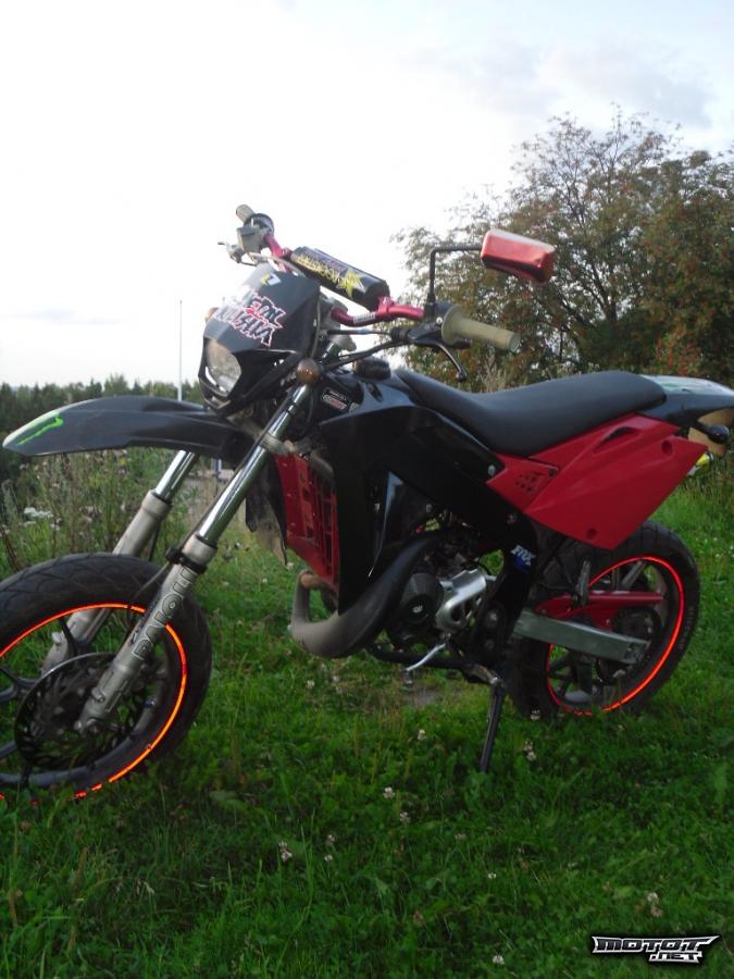 Mopo kulkee sen 65. Mopo kiertää aikas korkeelle jos vaan uskaltaa kierrättää. Mopossa yllätävän miehekkäät äänet 2-tahti vehkeeks. Mopoon on laitettu jonkin verran rahaa enimmäkseen ulkoseen näköön ja remppaan.