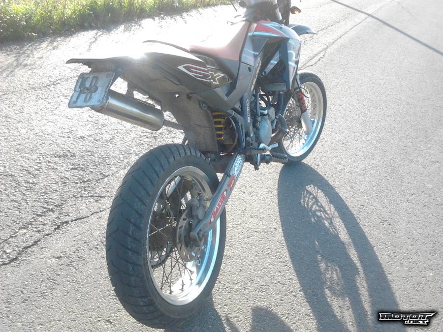 Elikkäs tässä olisi nyt tarjolla 2008 Aprilia Sx, johon on laitettu Derbi DRD pro sm sähköstartillinen kone slkuperäisen koneen laakereiden hajottua. Rungolla on rullailtu n.20 000 km. Takapyörän laakerit on vaihdettu n. 3000km sitten. Mäntä vaihdettu 10 000km kohdalla ja kaikki vaijerit paitsi ryyppyvaijeri on uusittu n. 2000km sitten. Takarenkaassa on todella paljon vielä pintaa jäljellä mutta eturengas on aika kulunut!! Ketjut ja rattaat vaihdettu n. 2000 km sitten. Öljyt vaihdettu juuri. Mopossa on myös semmoinen vika mittarissa että sulake on joskus edellisellä omistajalla palanut ja kokonaismatkan mittari on mennyt loppuun, mutta ketä se semmoinen nyt haittaisi.Tällä hetkellä alla on Mitrocin nastarenkaat. Mukaan laatikollinen kaiken näköisiä osia. Jos hintaan pistää 100€ lisää niin mukaan saa Arrowin teharin ja toiset katteet. Teho puolesta sen verran että nyt mopo on kuriton ja sisältää 90 suuttimen ja kulkee alle verorajan ettei tarvitse pelätä isoja sakkoja tai kortin menetystä tai ehkä kumpaakin j voin kyllä pistää vakioksi ostajan halutessa.
