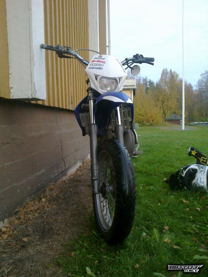 Joo myydään siistissä kunnossa oleva derbi, rullailtu on kyllä 15000 km mutta koneremontti on tehty 2500 km sitten jossa vaihdettiin derbin alkuperäinen mäntäsarja + tiivisteet. Vasta vaihdettu ohjauslaakerit, jarrupalat eteen ja taakse yms. Ja tiedoksi vielä että mopo ei ole pakkomyynnissä joten myydään suoraan vain hyvän tarjouksen tullessa tai sitten vaihdetaan päikseen supermoto yamaha dt:seen, vikoja on sen verran että mittari hajonnut n. 1000 km sitten eikä akku toimi, myydään vakiomaskilla, vakiotangolla, vakiopeilillä ja vakioänkällä ja mukaan tulee kaikki muut vakiohilppeet, kulkee n. 60 km/h