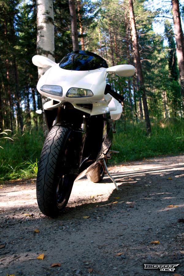 Edellisellä omistajalla olikin sitten käynyt hieman hassummin, kun väärien säätöjen takia pyörä oli leikannut kiinni. Mutta sen jälkeen pyörään tehtiinkin 1400€ täydellinen remontti alakertaan ja tietenkin yläkertaan! Siitä remontista on nyt n.12tkm joten pyörällä ajelee vielä huoletta kauan! Sen jälkeen n.3000km sitten vaihdettu mäntä, joten sitäkään huolta ei tule heti vastaan:)