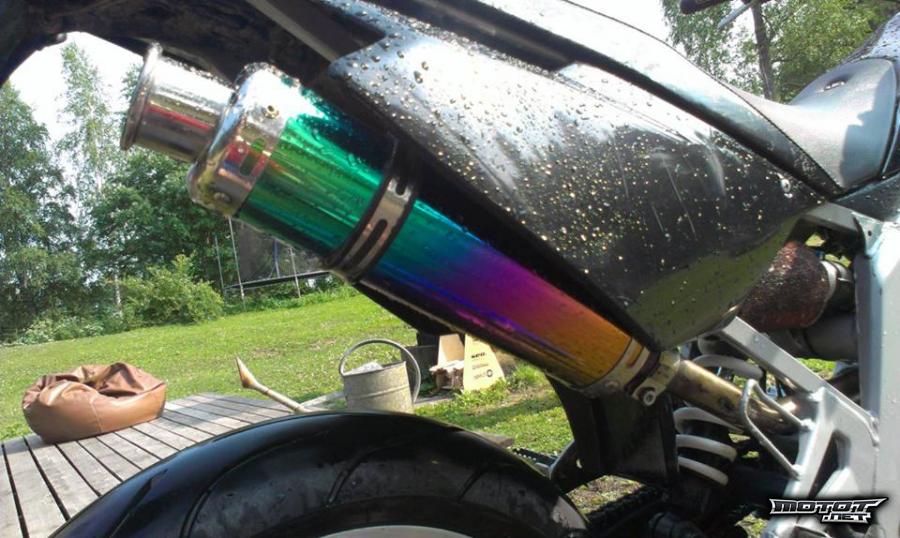 Nyt ois luotettava nelari kaupan loppukesän rientoihin. Vasta uudet renkaat vaihdettu eteen ja taakse samalla vaihdettiin kaikki jarrupalat. Hatamoton änkkä takaa kunnon pörinät vakio änkän saa mukaan. Vaihto kevareihin. Vasemmanpuolen takakatteen halkeama tuli kun kaatui nurmikolle.