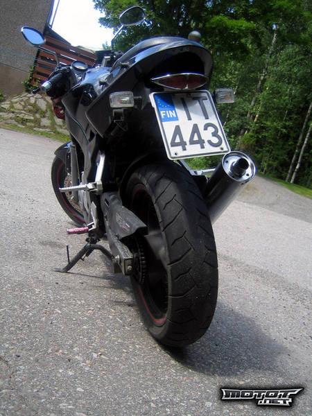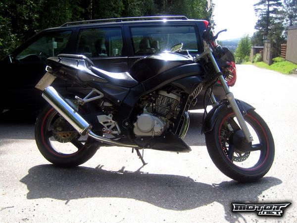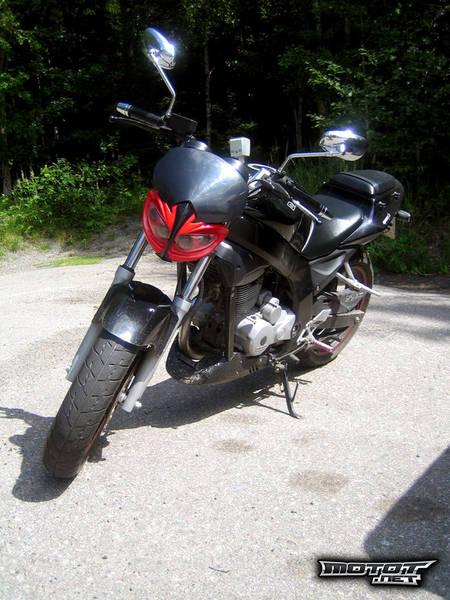 Huippunopeudet on alamäkeen 120 kilometriä tunnissa, mutta tasaisella 110 on realistinen. Kiihtyy nelitahtikevariksi todella pirteästi, päihittää nimittäin Hyosung Cometin ja pärjää CBRlle 80 vauhtiin asti. Pidetty hyvänä, ei ole rääkätty keulimalla, kumia polttamalla tai muulla vastaavalla tavalla. Putken vaihtamalla äänekkäämpään tästä saa takuuvarman katseenkääntäjän niin miitteihin kuin kaupunkiajoonkin. Putkea vaihtamalla saa myös hiukan lisätehoa. Muistuttaa ulkonäöltään HUOMATTAVASTI isompaa pyörää. Menis vaikka streetfighter osastoon pienellä laitolla.