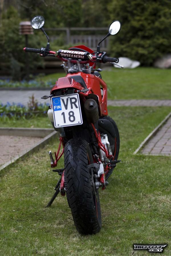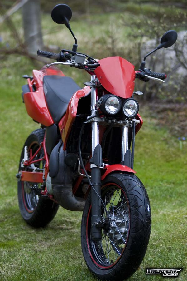 En edes viitsi alkaa luetella kaikkea uutta osaa mitä pyörään on laitettu kuvat puhukoot puolestaan. Ostin juuri Allrightista uudet minivilkut taakse ja uudet tankopainot jotka sopivat väriltään tuohon punaiseen Dicen stongaan. Ja mittaristokuvasta poiketen jarruletku kulkee nykyään eri kautta, joten se ei ole mittariston tiellä kuten useissa DT:ssä.