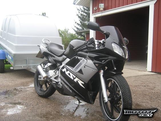 Hyvässä kunnossa oleva NSR. Pyörään laitettu vajaa tuhat kilometriä sitten 162cc. malosin pytty. Viime syksynä vaihdettu ketjut ja rattaat, on vielä hyvässä kunnossa.