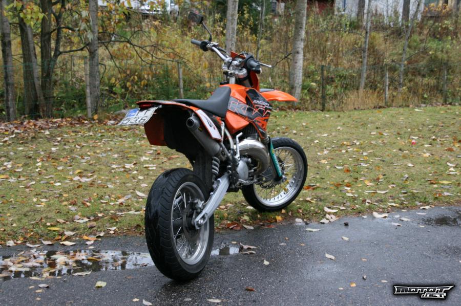 Pyörässä on kiinni supermotovanteet behrin kehillä jotka kasattu kotarin navoille ja ovat kokoa 3,5/4,5. Kummassakin päässä on kumeina Bridgestone Battlaxit (120/70 ja 150/60) Takakumi on aika lopussa.