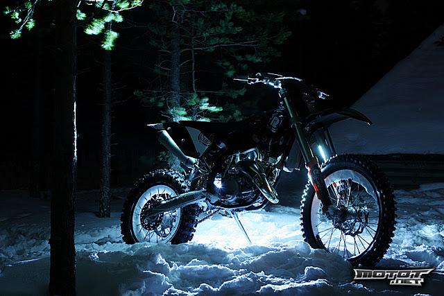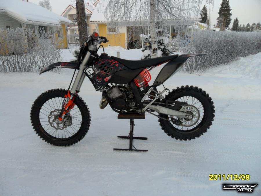 Pyörää pesty & huollettu säännöllisesti: alakertaöljyt vaihdettu alle10h välein (Castrol) ja samalla puhdistettu ilmanputsaria yms. bensan seassa käytetty castrol tts/rs(seos 2.25%) ketjut ja rattaat vaihdettu 5h sitten(oranssit, mutta ei kuvissa kiinni), täys koneremontti tehty 30h sitten jossa vaihdettiin: mäntä, kiertokanki, kaikki koneen laakerit ja tiivisteet. Pyörä on loistavassa kunnossa ja tehoa löytyy :-)