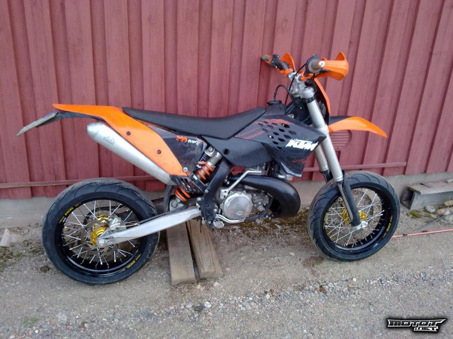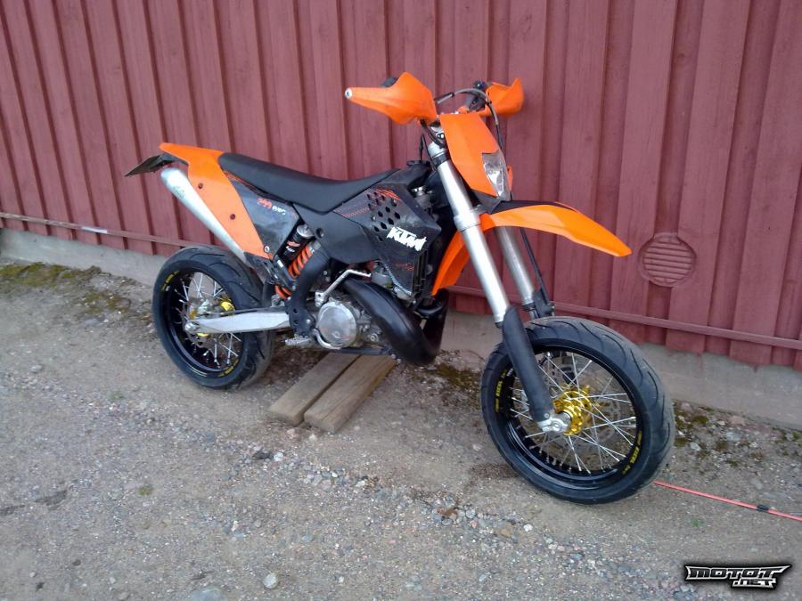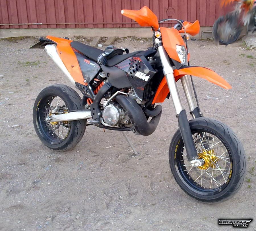 Tästä tehokas ja kevyt supermoto, jota ei joka pojalta löydy. Tehoa saman verran kuin 525 ja 530 kotareissa. Mutta painoa vähemmän.