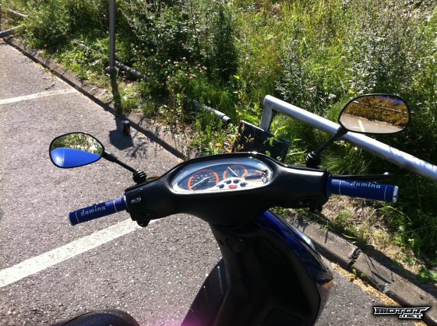 Takana istuvan jalkatuki tapit ja uudet vara jalkatuet mukaan. Mukaa entiset mopon mustat kahva tupit.