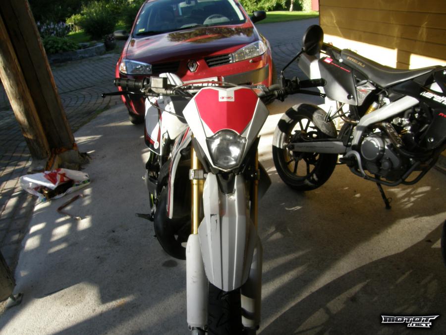 +150e ja saat mukaan Physic fatbar kultaiset tangon kiinnikkeet, Physic kultaisen fatbarin , melko hyväkuntoisen technigas enox äänenvaimentimen jolla tulee möreät ja matalat äänet ja Savan hyvä kuntoiset nastarenkaat eteen ja taakse. Takarenkaassa on yksi paikattu reikä yhden nastan kohdalla. Kummastakin renkaasta on irronnut vain pari nastaa. Ajelee vielä monta talvea!