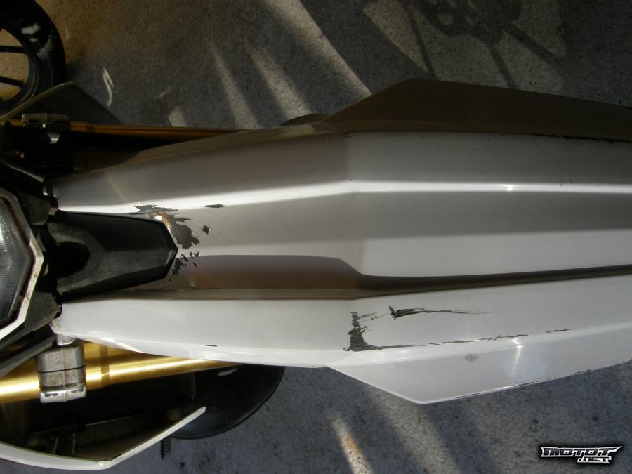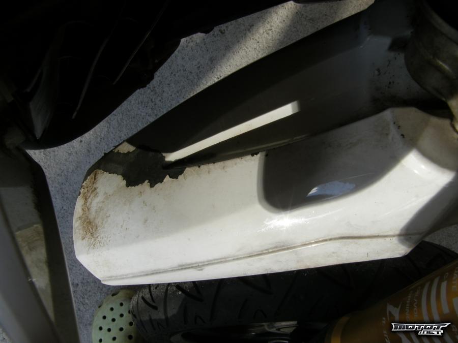 Katteissa naarmuja/maalia hieman lähtenyt etulokarista, vasemmasta takakatteesta. Vasemmasta etukatteesta lohjennut pieni palanen irti.