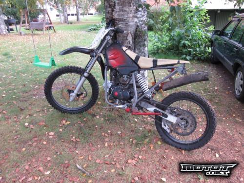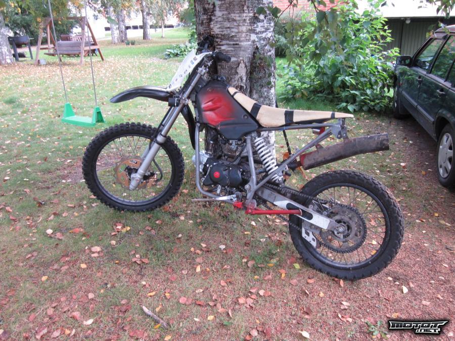 solikasta tulossa kuvia lähipäivinä kunhan saan loput uudet osat ja koottua. katteet ei ole kiinni mutta saa mukaan (pitäisi maalata uudelleen) ja jotain muita vakio osia mukaan.mittarilukemasta ei ole varmuuutta koska mittari hajosi mutta ajettu noin 5-6tuhatta. ja kone kuin uusi koska rempattu.