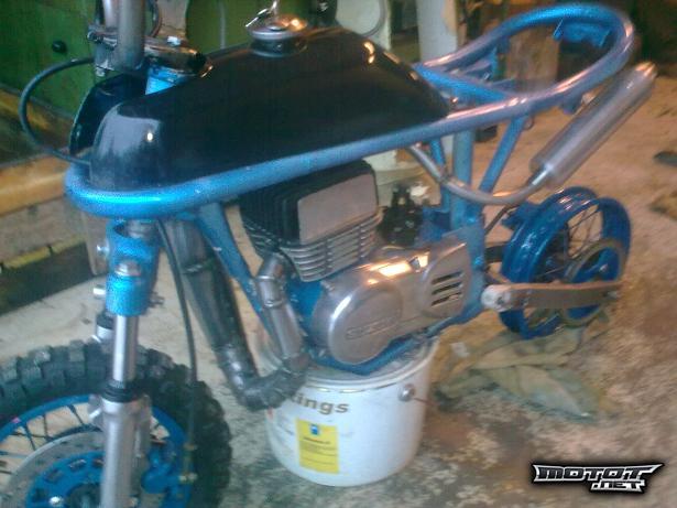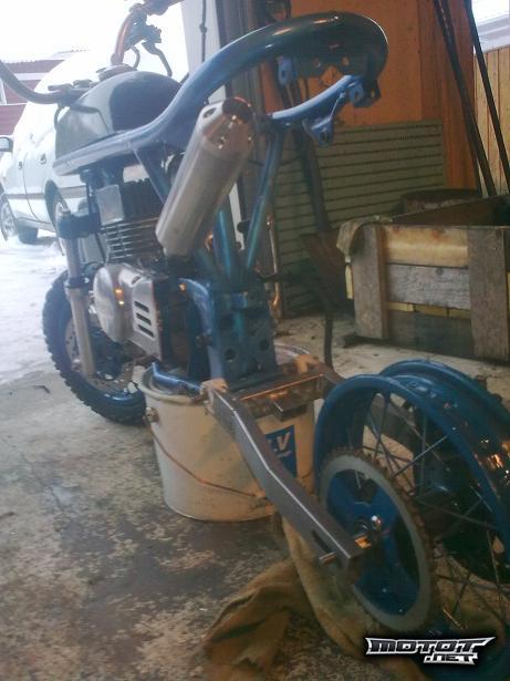 Itsetehty putki myös tekeillä, viimeistelyä vaille valmis, mitoitettu nykyiselle pannulle (57cc vakioläpätön, viilattu, kaikki mukaan, uudella testatulla männällä)