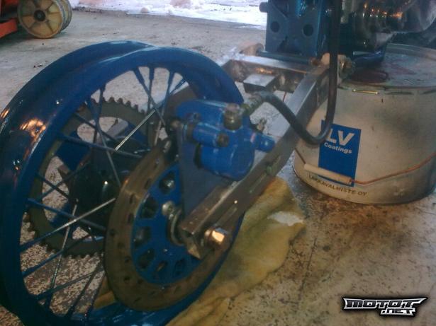 Jarrut ovat myös minicrossista ja myös sovitellut. Eteen on tehty adapteri joka kiinnitetään etupumppuihin.