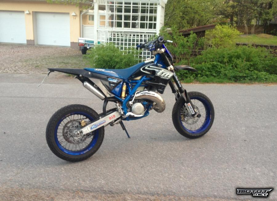 Temmistä löytyy Öhlinssin takaiskunvaimennin, Brembo/Nissin jarrut, hydraulinen kytkin, Excelin vanteet, Hgs-putkisto, V-Forcen läppäsylinteri, 38mm Keihin kaasutin. TM on kasattu parhaista ja laadukkaimmista osista, jonka ansiosta pyörä on todella kevyt ja takaa kyllä hienon ajonautinnon. Tehon puolesta TM on yksi tehokkain 125cc. Pyörä on täysitehoinen, mutta kaasukahvasta saa rajoitettua tehoa ruuvin avulla. Daytonalta tai moto-klinikalta saa osia puhelimella tilattua ihan muutamassa päivässä.