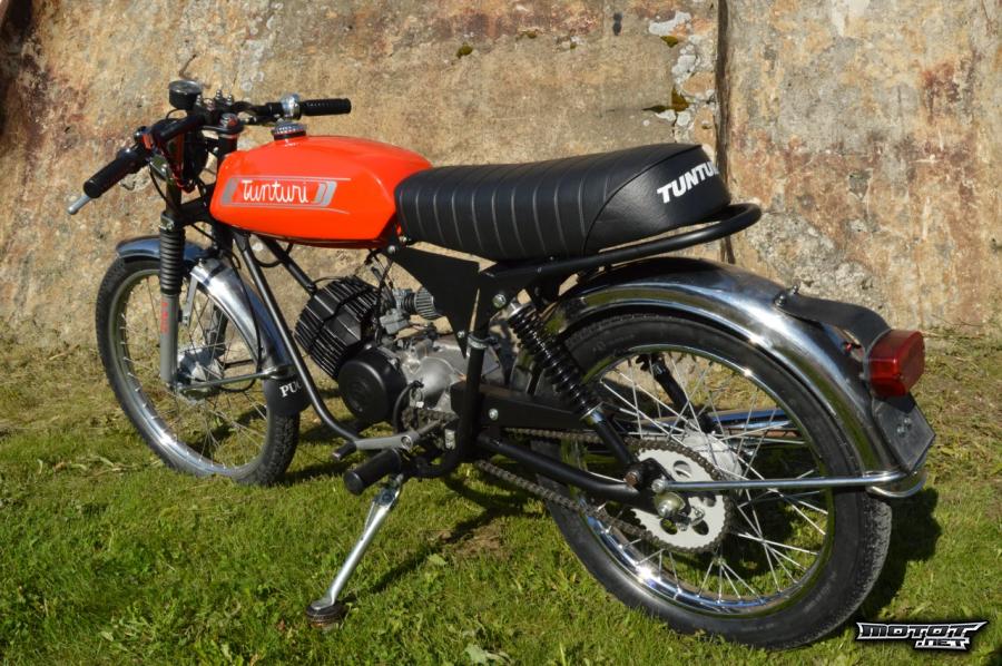 Mopo on huolella rakennettu uusista osista. Lähtökohtana hyvärunkoinen, mutta muuten romu Tunturi.