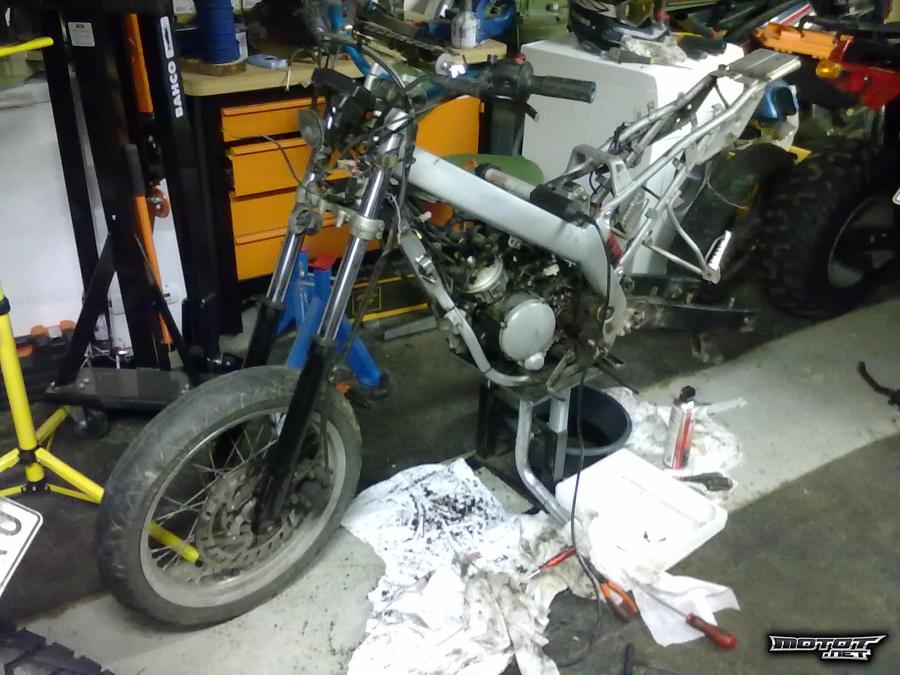 Tuorevoitelu oli vuotanut kaikkialle mopoon seistessään ja mopo on ollu osissa ja putsailtu kunnolla. Osissa ollessaan karsittiin paljon osia ja uusia ostettiin sekä