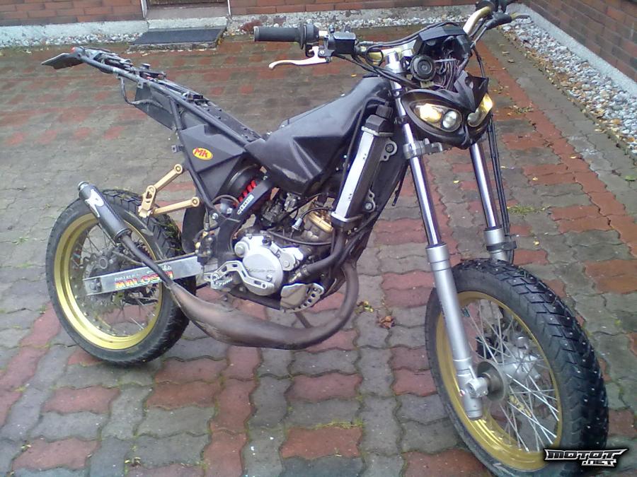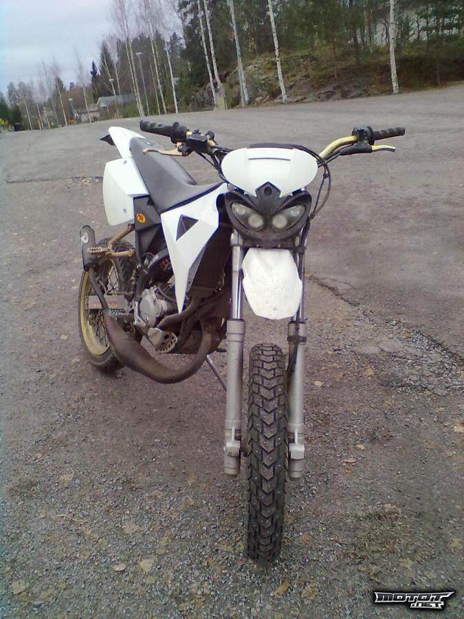 Mopoon on ostettu kokonaan uusi moottori noin 4500km sitten ja uuteen moottoriin vaihdettu uusi metrakitin hm sylinterisarja noin 2000km sitten. Mopon rungolla on ajettu jo yli 14000km. Kertaakaan ei ole tien päälle jättänyt ja tehoja löytyy