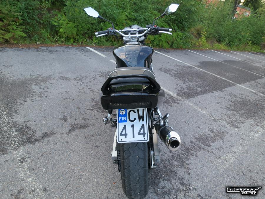 Pyörä myydään suoraan ajosta. Olen pessyt ja vahannut sitä säännöllisesti. Talven se vietti lämpimässä tallissa. Ennen talvea tehty kausihuolto merkkiliikkeessä (Boombike Oy) ja samalla vaihdettu öljyt. Öljyn vaihdon jälkeen ajettu vain noin 1500km.