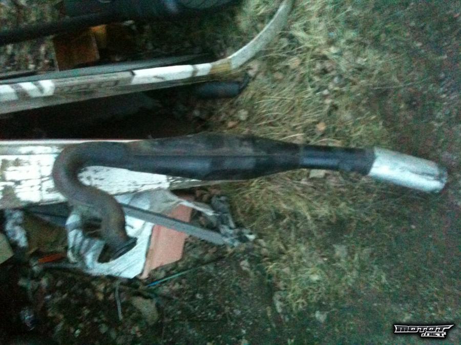 Tankissa on vanhat bensat ja rungossa lukee teksti "VAUHTI KORJAA VIRHEET" molemmilla puolilla vaihtoa voi ehdotella muihin halpoihin piikkisiin pyöriin tai stuntti skoottereihin.