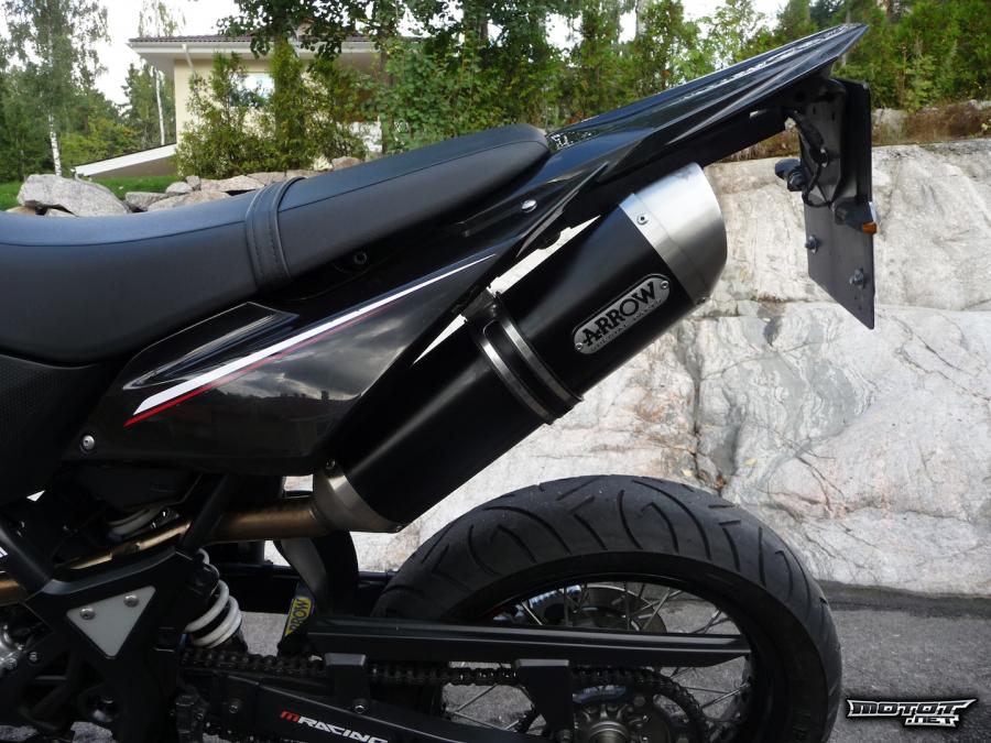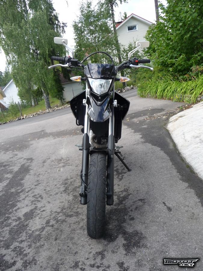 Hieman vaihdettua osaa pyörästä löytyy. Pyörässä on fatbar tanko, timelessin fatbar kiinnikkeet, 2 sirompaa ja siistimpää tuning peiliä, uusi paljon tyylikkäämpi takavalo ja siistimmät vilkut. Kilventelineen ja takavalon vaihdossa takalipan alle jäi kohta jossa ei ollut mitään katetta, niin siihen olen tehnyt pellistä sopivan katteen jonka olen maalannut mattamustaksi. Kate on lähes huomaamaton ja saa perän näyttämään siistimmältä. Lisäksi pyörässä on kiinni arrowin DarkLine kokoputkisto josta lähtee uskomattomat äänet. Lisäksi putken ympärille on kiedottu lämpöeriste nauhaa mikä ehkäisee jalanpolttamistta putkeen.
