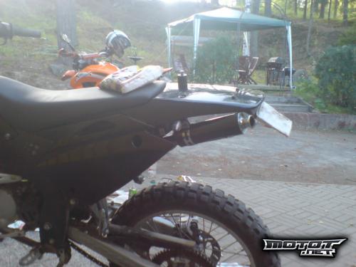 Turbokitin änkkä ja välipilli jotka menevät suoraan riejuun. Menee suoraan vakioputken kanssa. Luultavasti ei sovi Tk paisarin kanssa riejuun. Pienellä sovitepalalla (=lyhyt metalliluiska jossa 2 reikää) saa sovitettua sopivan korkealle/matalalle oman mielen mukaan. (kuvassa jossa änkkä ja välipilli irti moposta oli otettu likaisena)