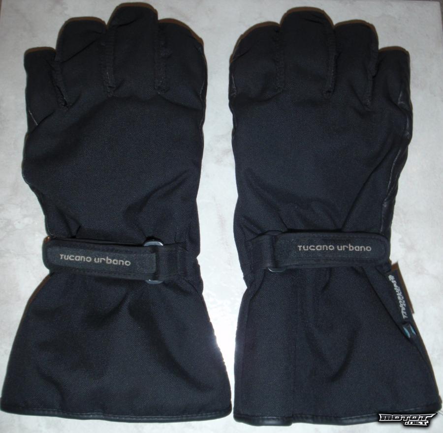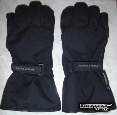 Paksut miesten ajohanskat, merkki Tucano Urbano, malli Motus, väri musta. Päällyskangas nylonia, kämmenosa nahkaa, 100% vedenpitävät ja hengittävät, fleece-sisävuori. Pitkä varsi, tarrakiinnitys.