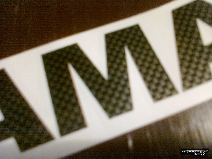 Kaksi Yamahan carbon look tarraa. Tekstin koko 22x3.2cm 2€/kpl Tarrat kiinnitetään läpinäkyvällä siirtokalvolla joka repäistään pois kun tarrat ovat kiinni, joten pelkät irtonaiset kirjaimet jäävät alustalle.