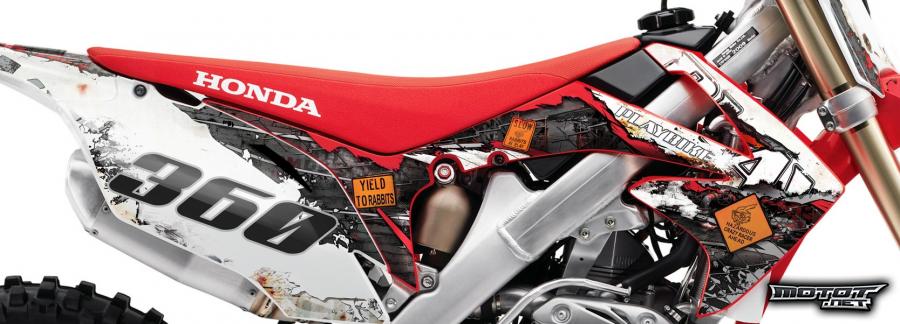 Playbikeltä saat Honda CRF-malleihin sopivat kotimaiset, näyttävät ja kovaa käyttöä kestävät tarrasarjat omalla nimellä ja kilpailunumerolla!