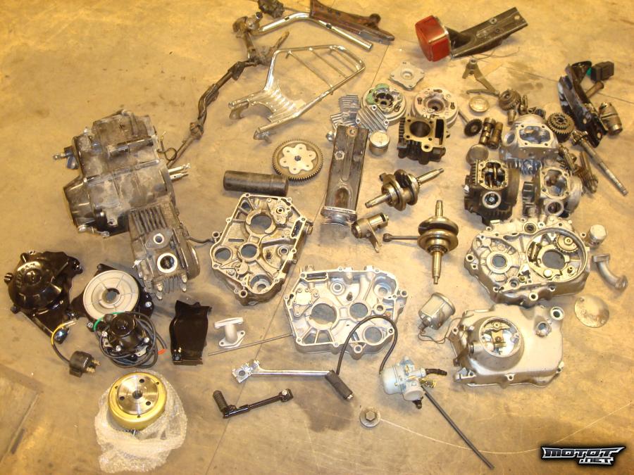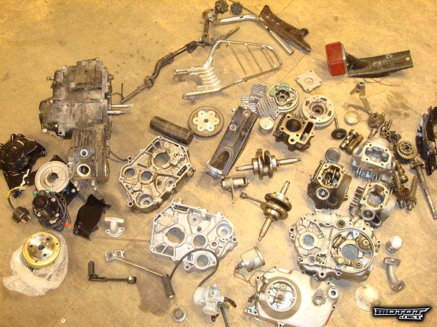 Lohkoja,imukauloja,sylinterinkannen poskia,pikkuventtiili kansia,73cc sylinterisarja,takavaloja,ehjä orkkis mittari,apinakiikku,vaihteiston osia,tarakka,jalkatappirunko ynm. Osa osista hyväkuntoisia osa huonompikuntoisia.