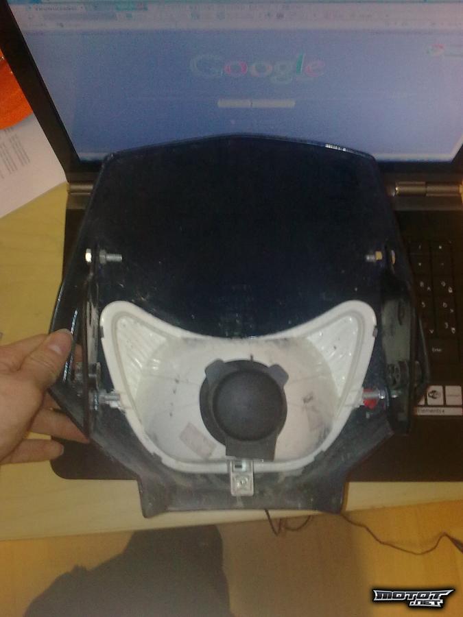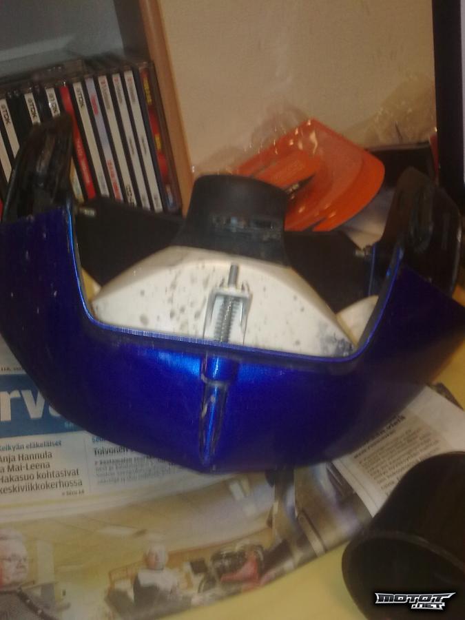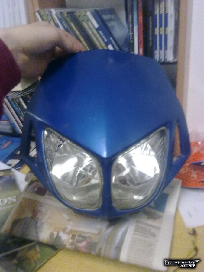 Maskissa on E-hyväksyntä. Maski on alunperin ollut musta, mutta se on maalattu siniseksi. On ollut kiinni Derbi Senda 125 sm. Sopii kaikkiin Derbin mopoihin ja kevareihin. Ostaja maksaa postikulut..