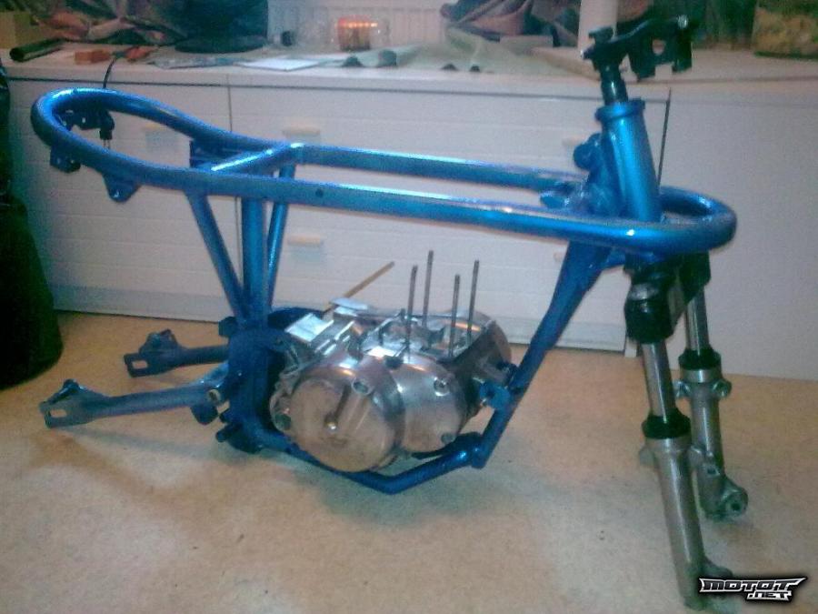 -Vahvistettu runko, maalattu sinisellä helmiäisellä, takahaarukka mukaan, ei papereita