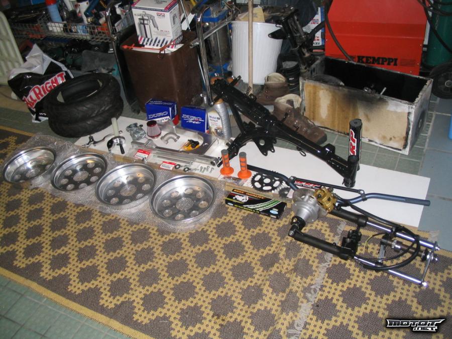 Eli kahta monkeya rakennettu, mutta jäänyt vaiheeseen ja nyt ajattelin että niistä tuleekin lähes orkkiskuntosia eli myydään pois noita palikoita. esim keulat, vanteet, takahaarukat ainaki. Mahdollisesti myös 110cc moottori puolautomaatti nelivaihteinen sähköstartilla