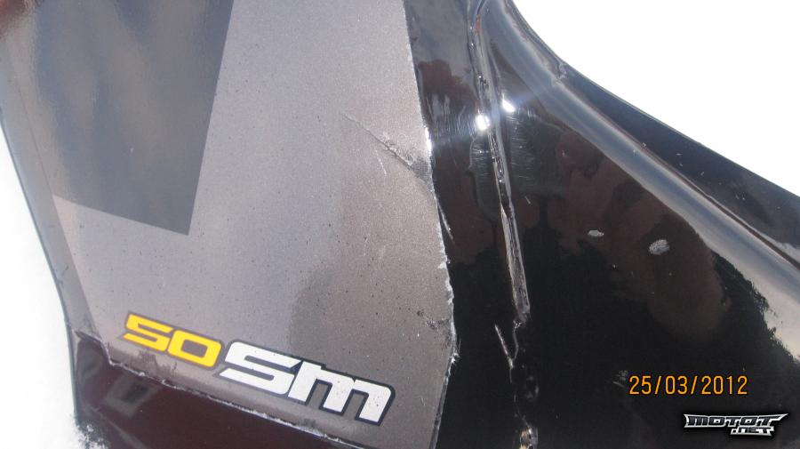 *Takakatteita ja takalippaa muovihitsattu parista kohtaa takaa. Varmasti kestää! Juuri maalattu Mastonin spraymaaleilla. Maalipinta hyvä! Pieniä epätasauksia löytyy, mutta ei mitään isoja! Kaikki kiinnikkeeet ehjät!