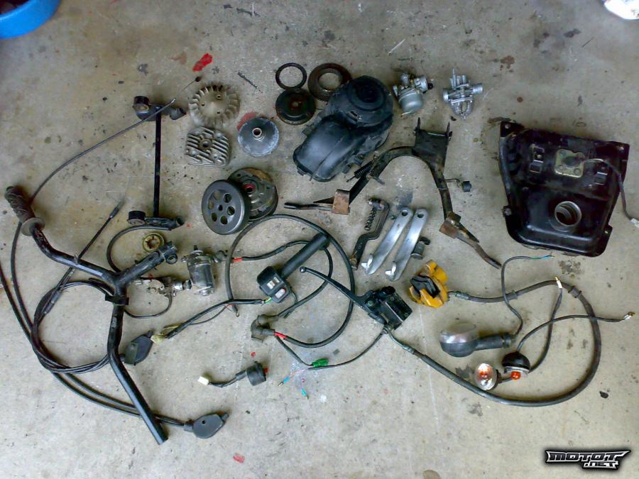 Vastaus: Kaikki kuvassa näkyvä ja paljon muutakin. Runko-, moottori- ja sähköosia.