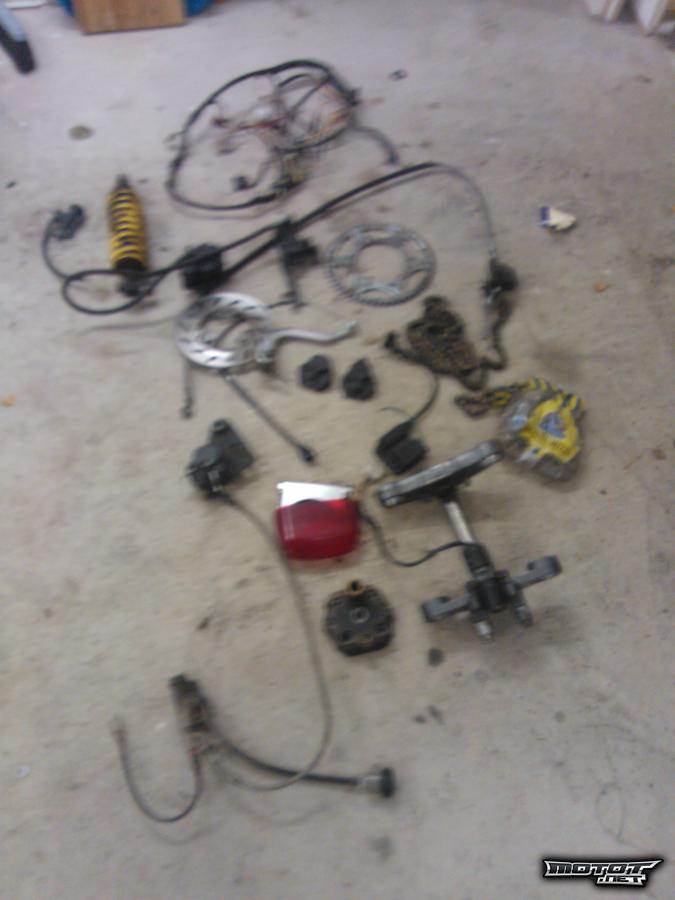 Vastaus: Löytyy etujarru satula 1 kokonainen 1 osina, letku löytyy, joku sylinteri löytyy... CDI on mutta sitä on nyt kyselty aika paljon, kiksi ja vaihdepoljinkin pitäis löytyä, 25e tai sit tuut noutaa 40e kaikki ;)