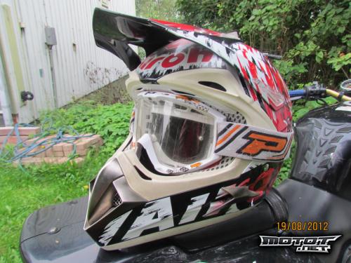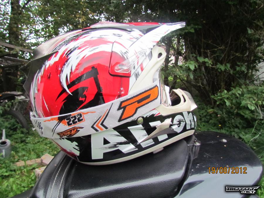 Myynnissä 2010 elokuun lopussa Tampereen Konepyörästä ostettu Airoh dome squad kypärä ja Moped-Garagesta ostetut Progripin cairoli replica ajolasit.