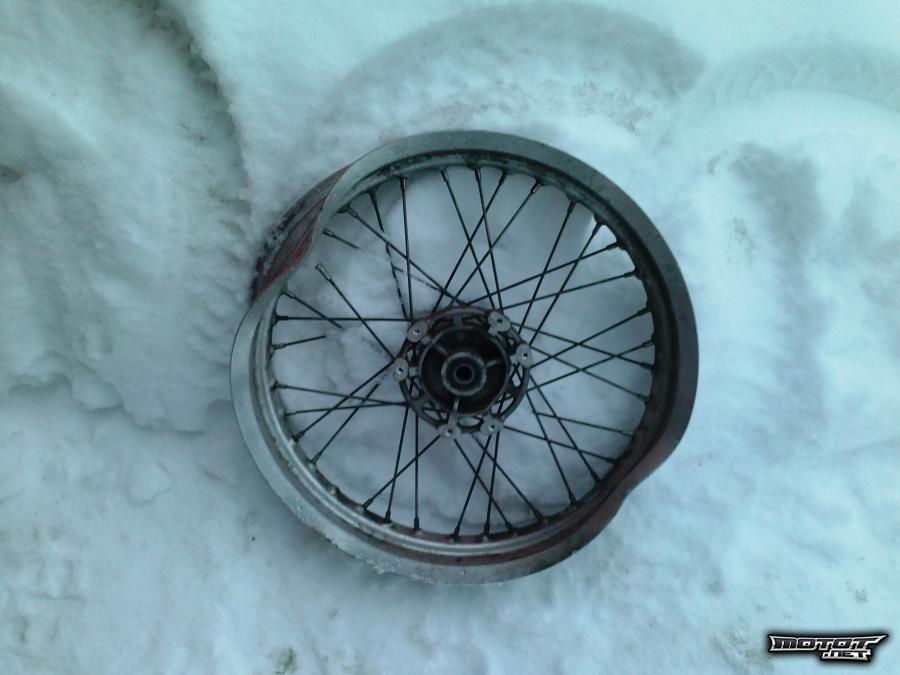 Yamaha DTn etuvanne - krominen ja kehä solmussa. Kehän ja muutaman pinnan vaiholla saapi käyttökelpoisen vanteen.