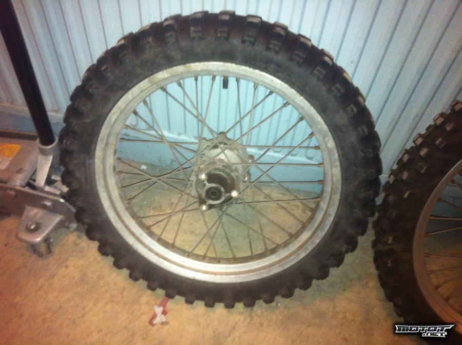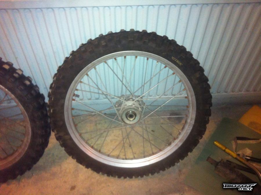 Vastaus: eli ratas levyt akselit ja renkaat ja sinä maksat postit? toisesta vanteesta on yksi pinna poikki mutta ei se ajoa haittaa