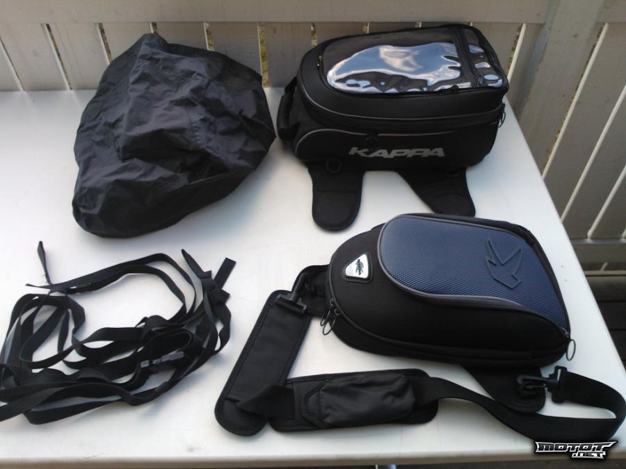 1) iso tankkilaukku, magneettikiinnitys/remmit, päälimmäisenä karttatasku