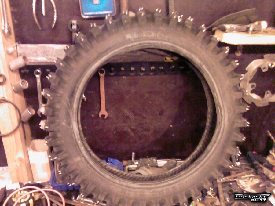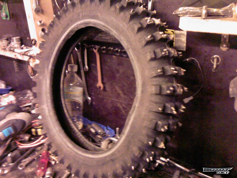 jäälle tai minne vaan kohtuukuntoinen piikki pyörä. keskeltä osa piikeistä vähän sileitä, mutta laidoissa vielä paljon piikkejä.. pitää varmasti paremmin kuin normaali nappula kumi, tallista pois pyörimästä.. koko = 4.10x14