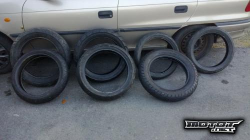 Tälläsiä supermoto renkaita jääny varastoon pyörimään, keväällä myyn DT:n pois niin ovat mulle tarpeettomia. Hyviä renkaita vaikka kuminpolttohommiin, itelläni ollu jo 4 tällästä alla tänäkesänä