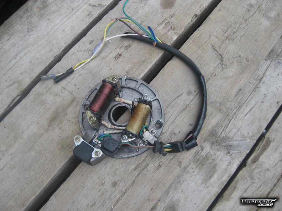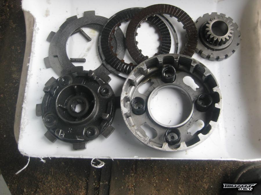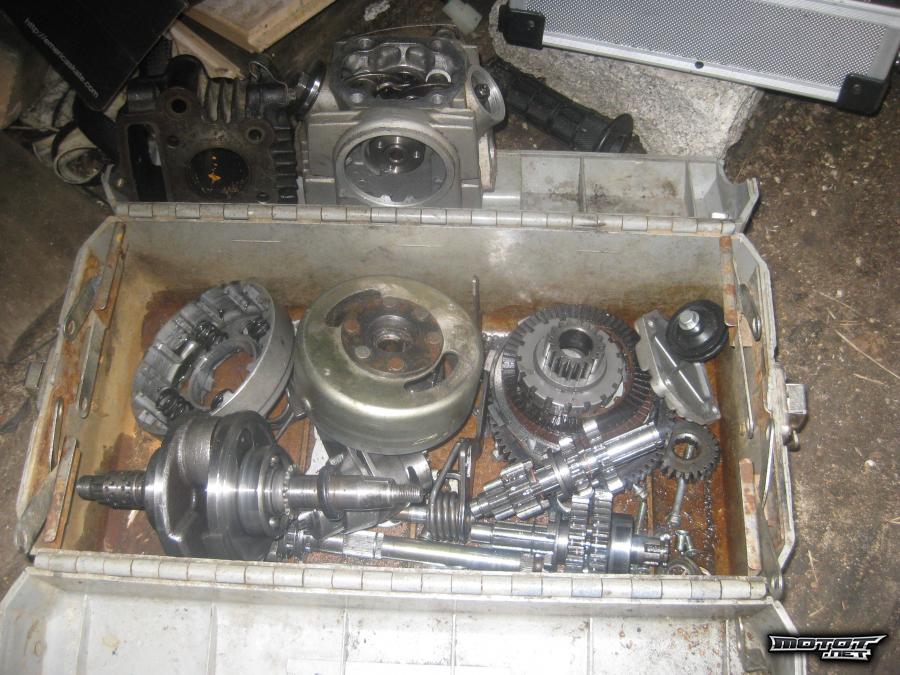 lohkoja, akseleita, staattori, vauhtipyörä, kansi( toinen pakoputken pulttikatkennu reikään.) Kytkinasetelma, sarvet, kahvakumit, kaasukahvan runko.