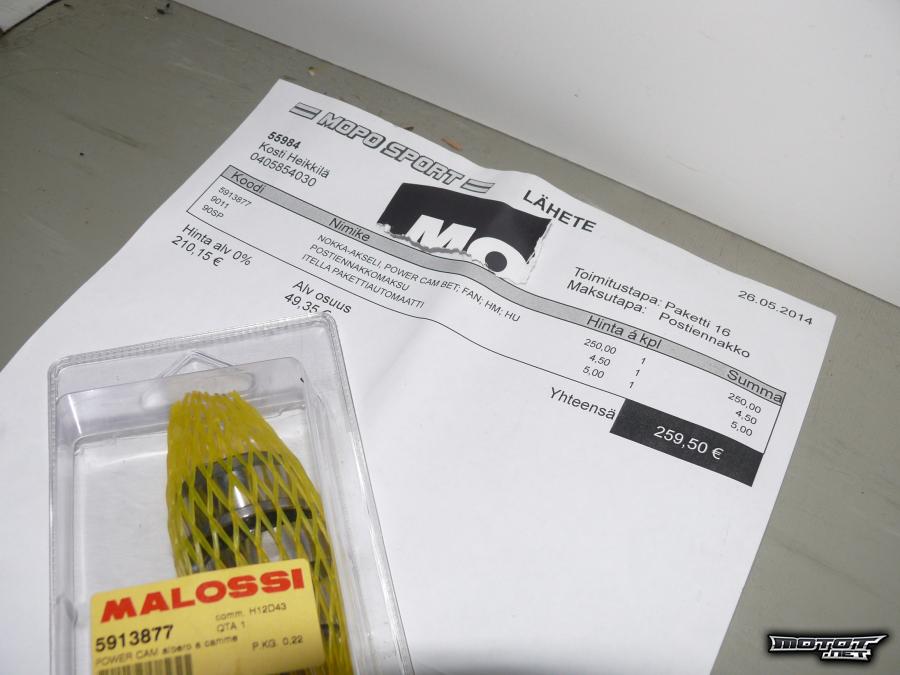 Tästä täysin uuden veroinen Malossin virinokka akseli malossin 183 pytyn kaveriksi! Kokeiltu pyörässä kiinni ja ajettu noin 15km asennuksesta pieniä kosmeettisia naarmuja julkisivupuoleen!!