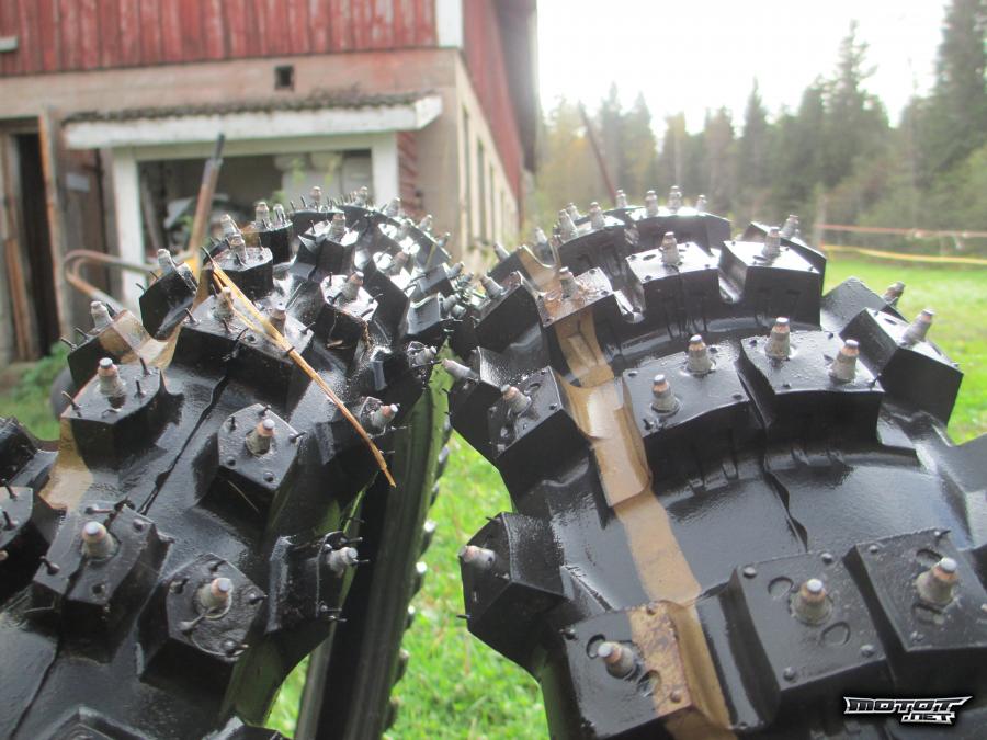 VARATTU 18.10 asti!!! Nyt myynnissä hyväkuntoiset piikkirenkaat. Eturengas 80/100-21 ja takarengas 110/90-19 Ajettu muutaman kerran metsässä ja jäällä. Jäivät ylimääräiseksi kun myin pyörän pois.