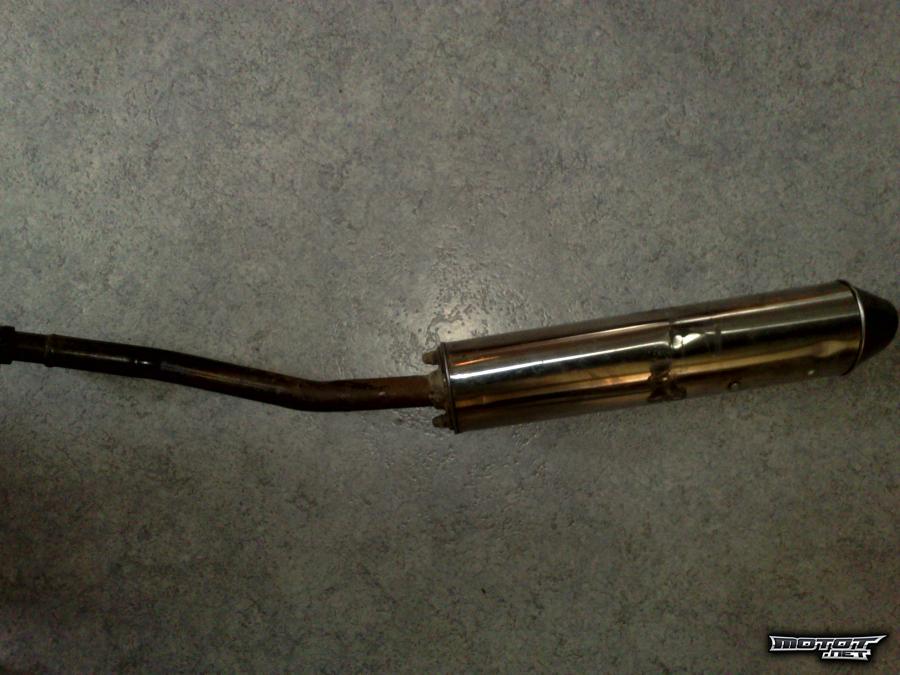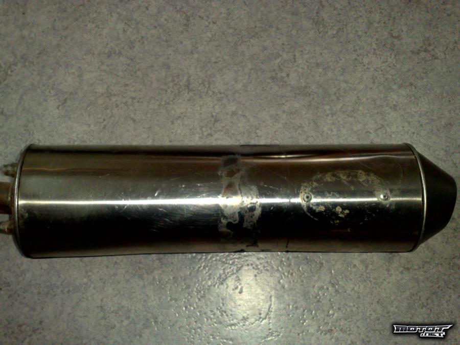 Putki on muuten hyvässä kunnossa, mutta sateisilla keleillä on tullut ajettua niin se on alkukäyrästä hieman ruosteessa. Änkäs näkyy vähän mustii öljy tahroi, mut ne saa helposti puhdistettuu metal polishil, mutta ku itellä ei sit sen enempää sille käyttöö oo, niin enpä sit oo ostanu. Jos peilikuvan haluu nähä niin käyttää vähän hiomapaperia ton mtal polishin kera, niin kyllä se siitä =)
